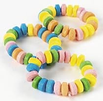 Stretchable Candy Bracelets. Assorted fruit flavors. Individually wrapped. 2 1/2" Fat-free. Perfect for a birthday diva princess or any party favor! Absolutely delicious!!